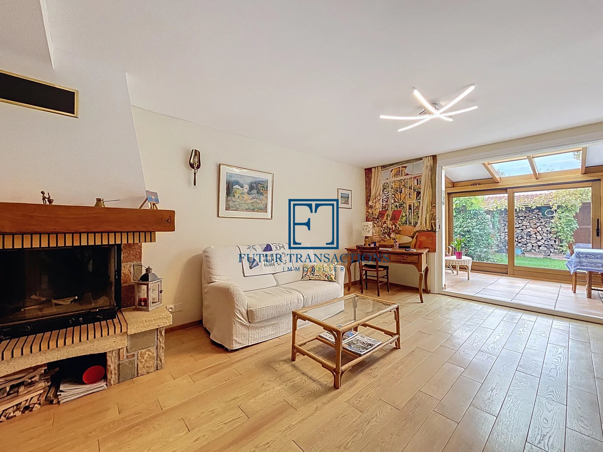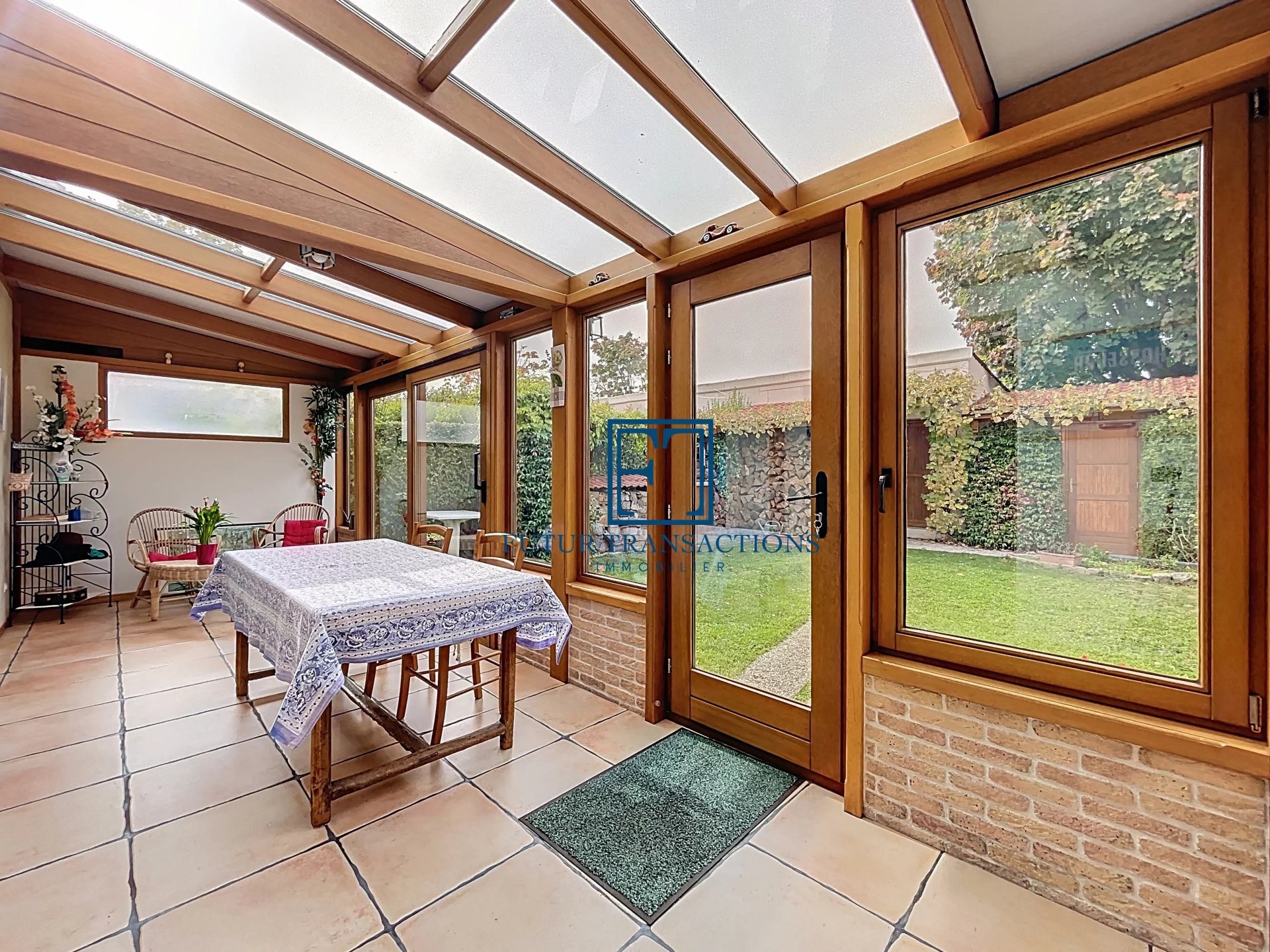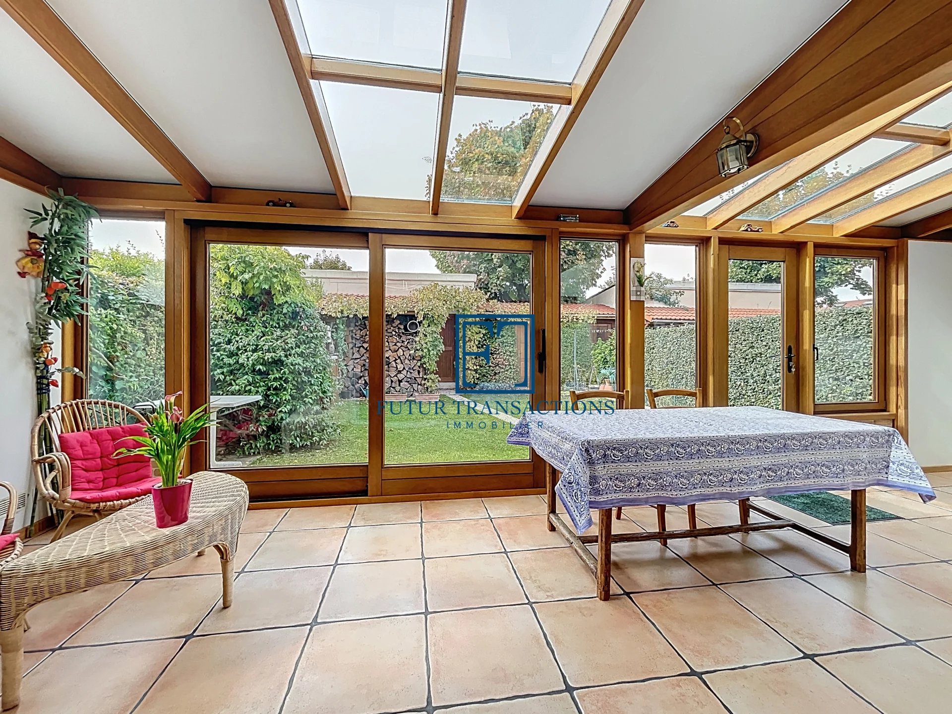 Les grandes fenêtres coulissantes à double vitrage assurent une luminosité naturelle optimale tout en garantissant une isolation thermique efficace. À l’extérieur un jardin bien entretenu et sécurisé, idéal pour les enfants ou les animaux de compagnie.
