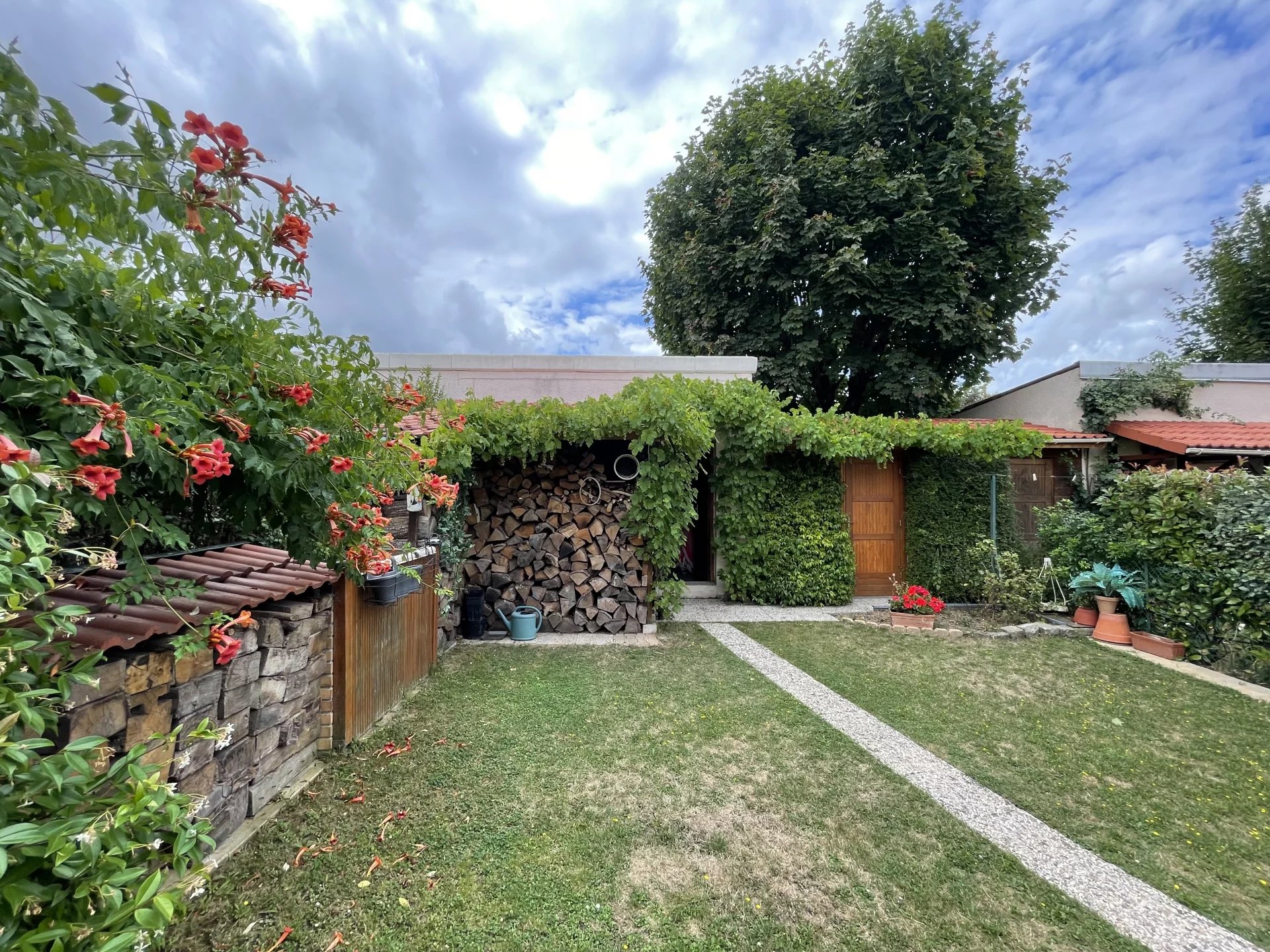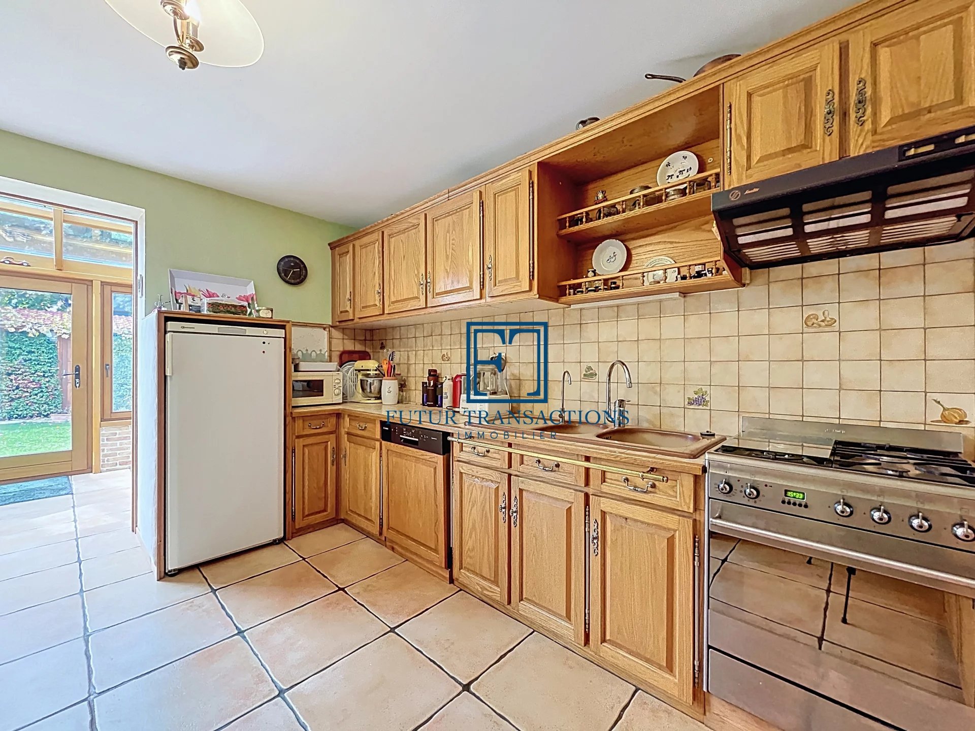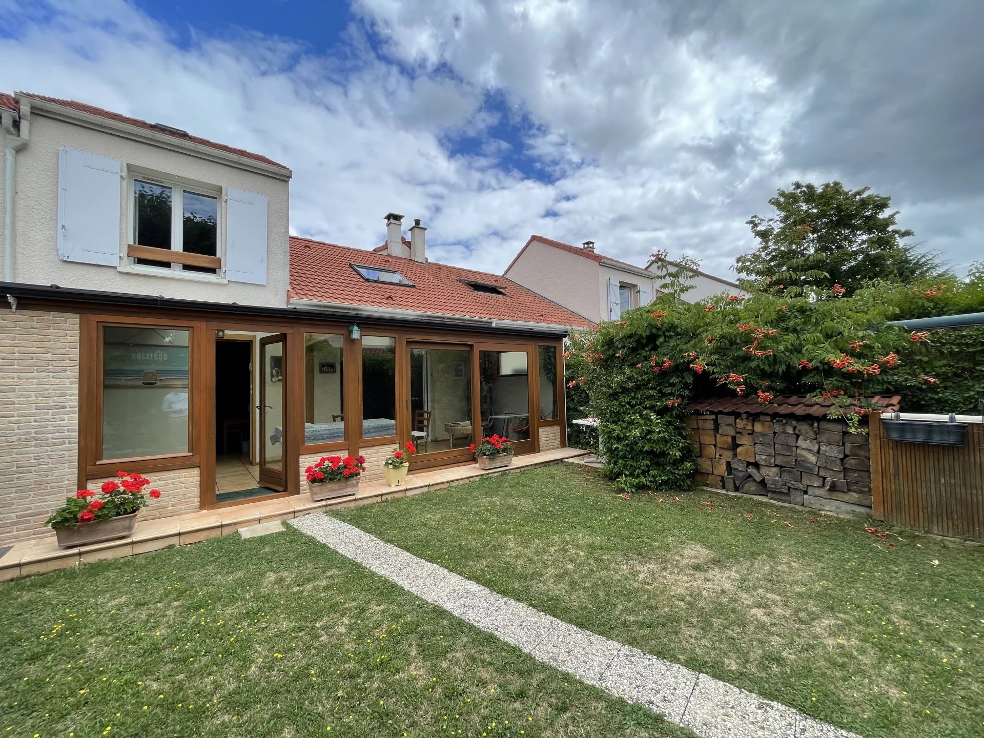 Les grandes fenêtres coulissantes à double vitrage assurent une luminosité naturelle optimale tout en garantissant une isolation thermique efficace. À l’extérieur un jardin bien entretenu et sécurisé, idéal pour les enfants ou les animaux de compagnie.